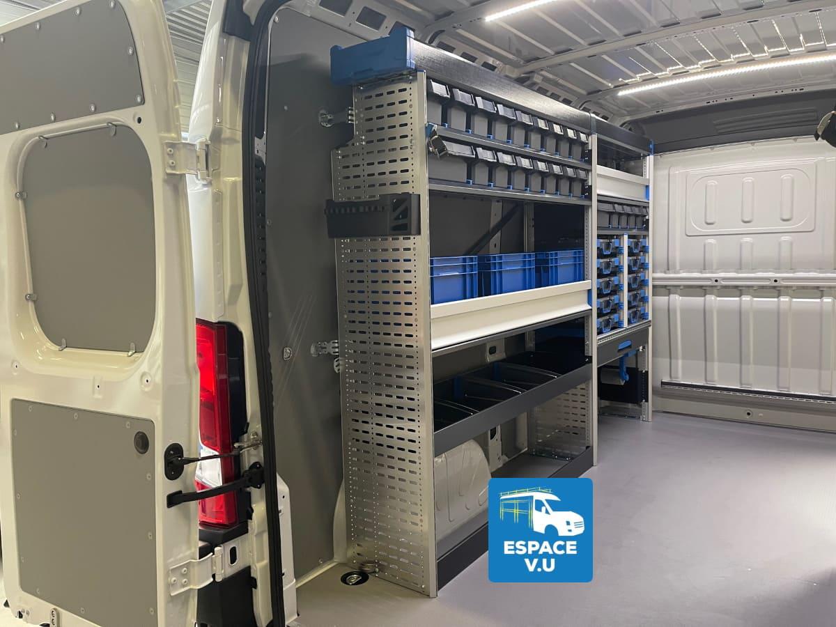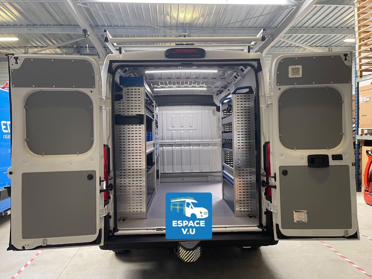 Espace V.U Sarl, l'aménageur des véhicules professionnels sur mesure, vous propose des aménagements et des équipements pour le Peugeot Boxer 2023 L1 L2 L3 L4, H1 H2 ou H3 thermique ou électrique des artisans et du technicien poseur ou de maintenance de l'entreprise. Transformez votre véhicule utilitaire en atelier mobile. Modèle identique au Citroën Jumper et Fiat Ducato.